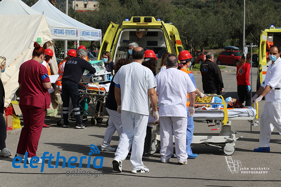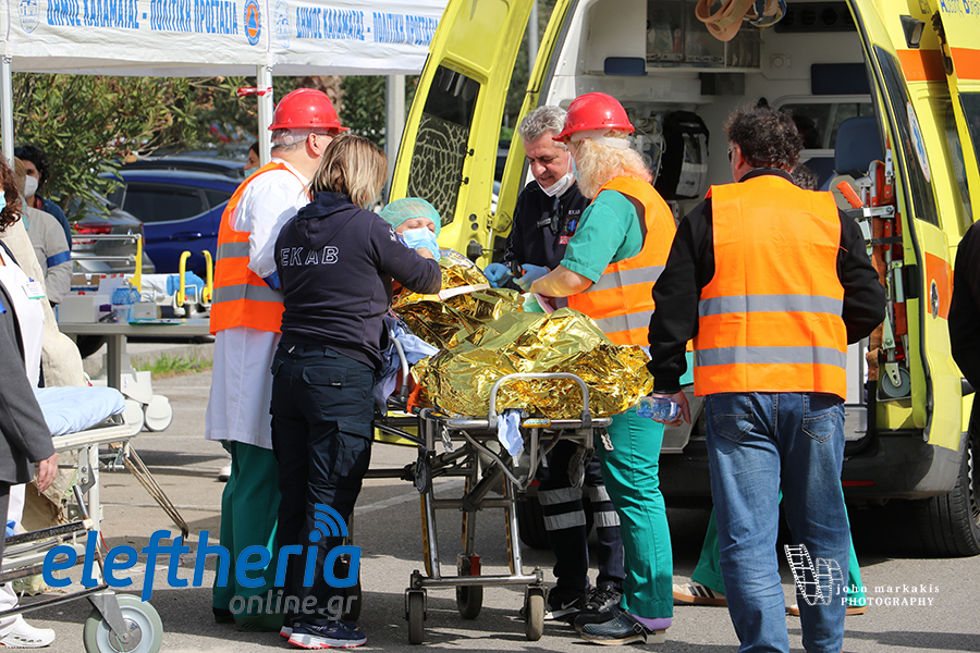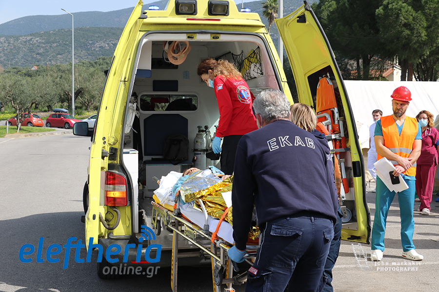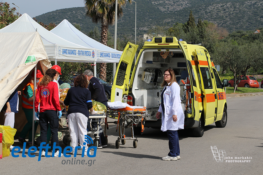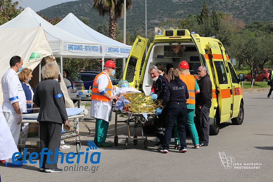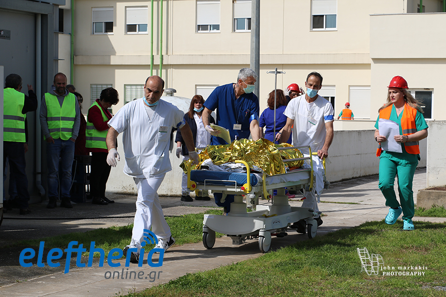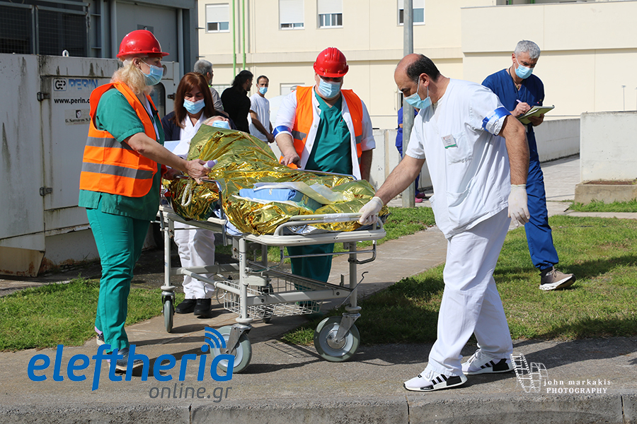 Στην άσκηση μπήκαν στη συνέχεια ασθενοφόρα του ΕΚΑΒ, που με ταχύτητα έσπευσαν και μετέφεραν τους ασθενείς και τη λεχοΐδα σε άλλα νοσοκομεία.