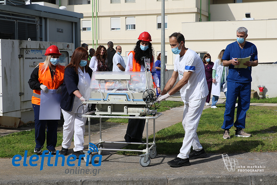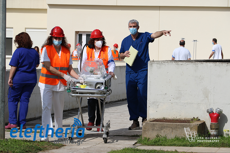 Ακολούθησαν η μεταφορά επιτόκου με φορείο στο χειρουργείο για να γεννήσει, νεογνού σε θερμοκοιτίδα κι ασθενών από τη Μονάδα Εμφραγμάτων και με κάταγμα ισχίου.