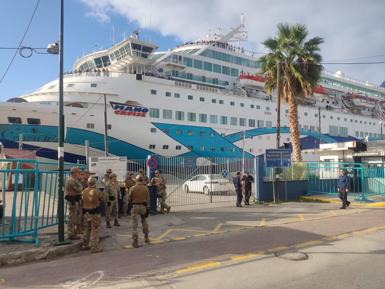 Στο λιμάνι της Καλαμάτας από νωρίς επίσης βρίσκονται ισχυρές αστυνομικές δυνάμεις για να αποτρέψουν το ενδεχόμενο οι διαμαρτυρόμενοι διαδηλωτές να έρθουν σε επαφή με τους τουρίστες και για να διασφαλιστεί η ομαλή αποβίβασή τους.