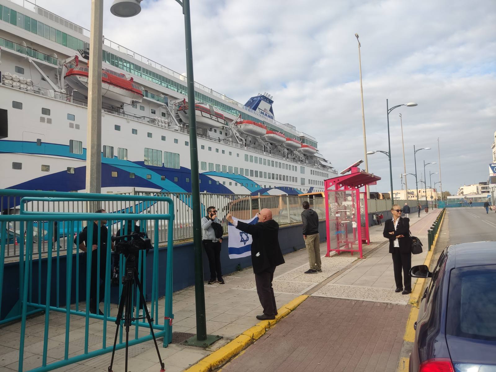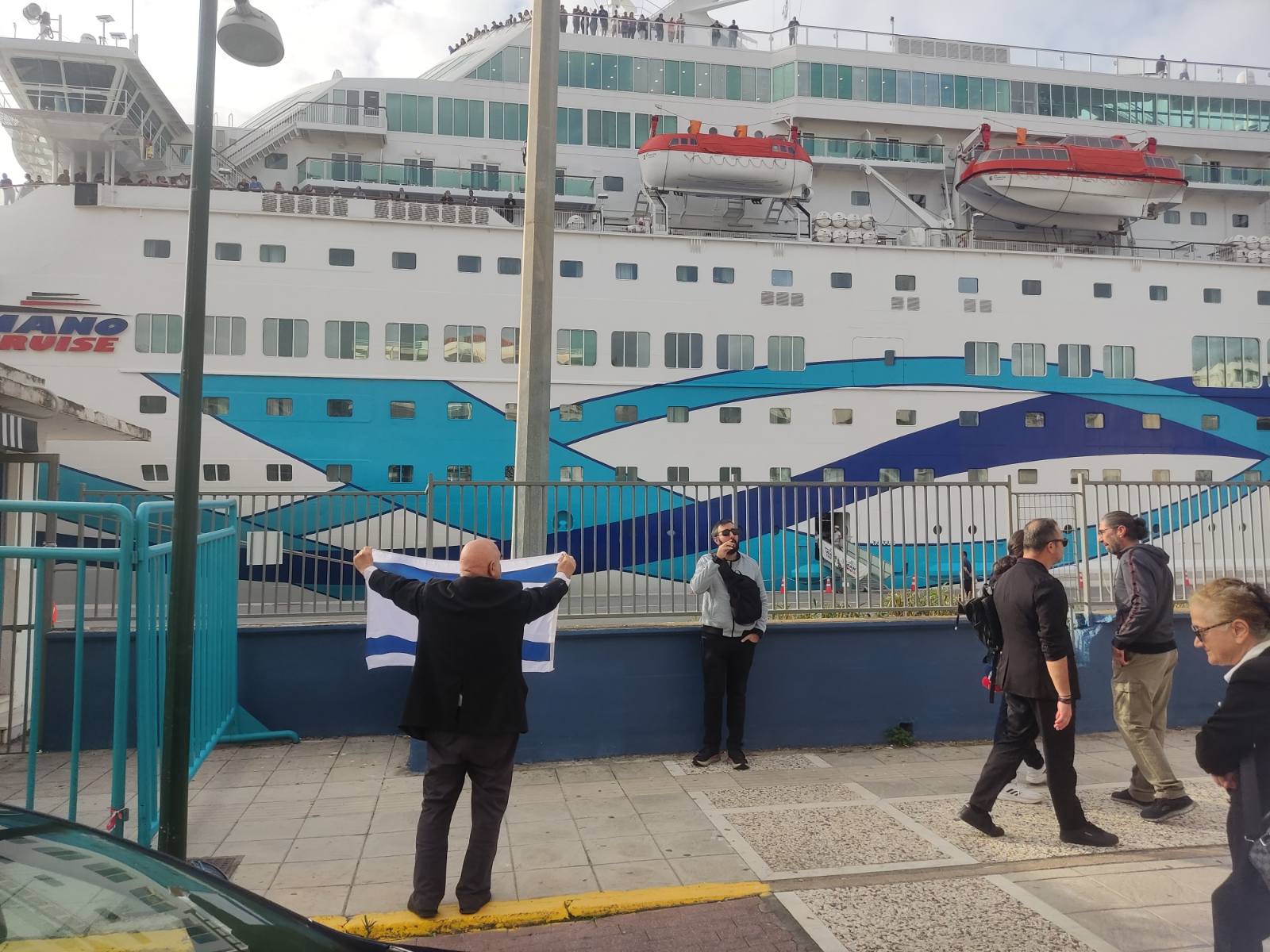 Από νωρίς το πρωί περιμετρικά του λιμανιού βρίσκονται μέλη της Αντιφασιστικής Κίνησης Καλαμάτας και άλλοι διαδηλωτές, οι οποίοι διαμαρτύρονται για την άφιξη Ισραηλινών τουριστών στη μεσσηνιακή πρωτεύουσα ως αντίδραση στη γενοκτονία στη Γάζα.