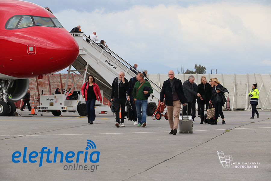 Τους 100 περίπου επιβάτες της πρώτης πτήσης από Ζυρίχη υποδέχτηκε κλιμάκιο της Περιφέρειας Πελοποννήσου με επικεφαλής τον αντιπεριφερειάρχη Μεσσηνίας Στάθη Αναστασόπουλο.