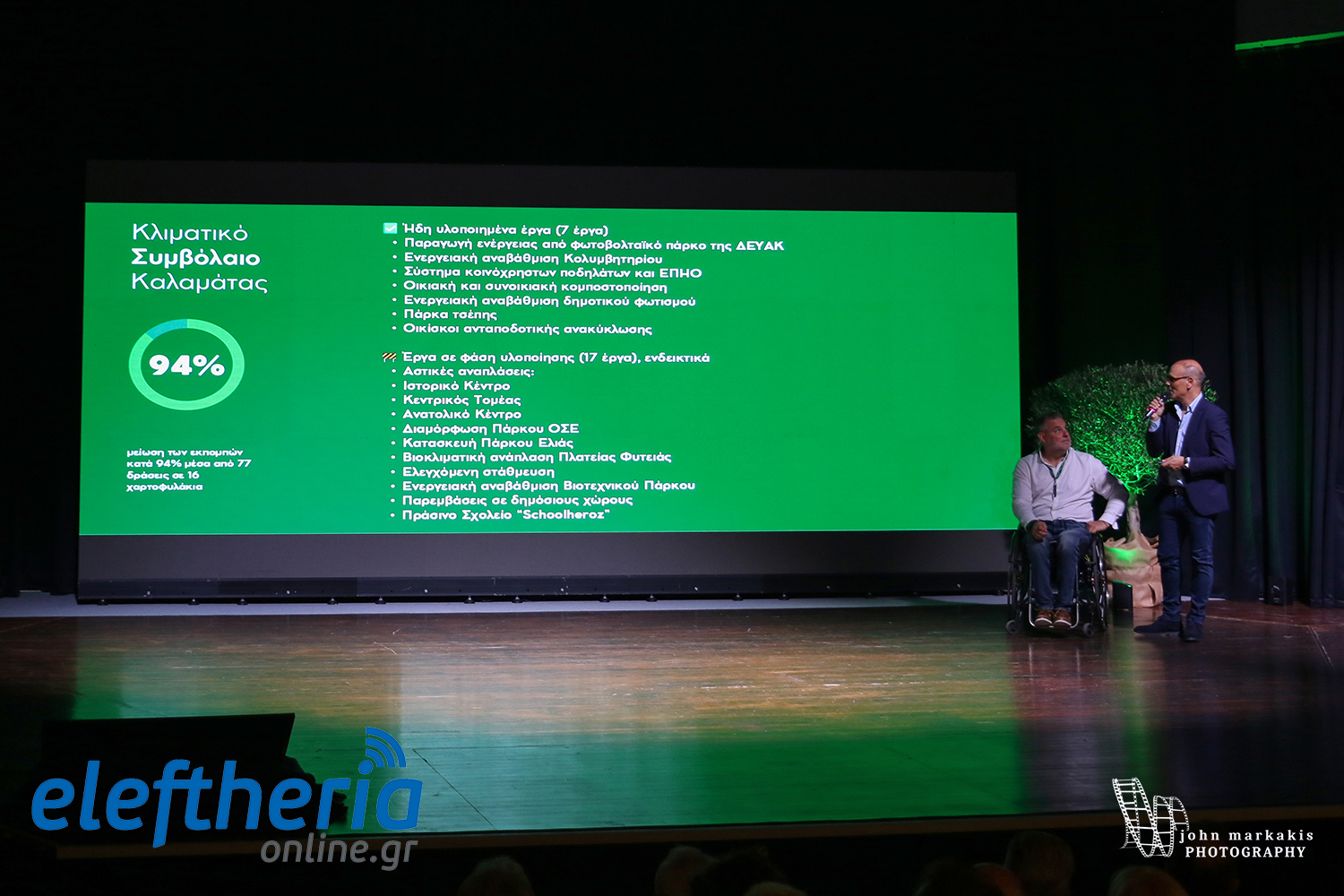 Ο αντιδήμαρχος Στρατηγικού Σχεδιασμού και Κλιματικής Ουδετερότητας Βασίλης Παπαευσταθίου παρατήρησε ότι “δεν είναι πολυτέλεια, αλλά αναγκαιότητα να διαφυλάξουμε την πρόσβαση των επόμενων γενιών στους πόρους” και μαζί με τον αντιδήμαρχο Αθλητισμού Γιώργο Λαζαρίδη παρουσίασαν έργα του Κλιματικού Συμβολαίου. Είπαν ότι η στρατηγική περιλαμβάνει 4 άξονες κι ενημέρωσαν για έργα που έχουν γίνει, όπως είναι η ενεργειακή αναβάθμιση του δημοτικού φωτισμού, ενεργειακή αναβάθμιση του Κολυμβητηρίου, τα φωτοβολταϊκά της ΔΕΥΑΚ και οι στρατηγικές αστικές αναπλάσεις.