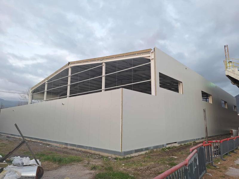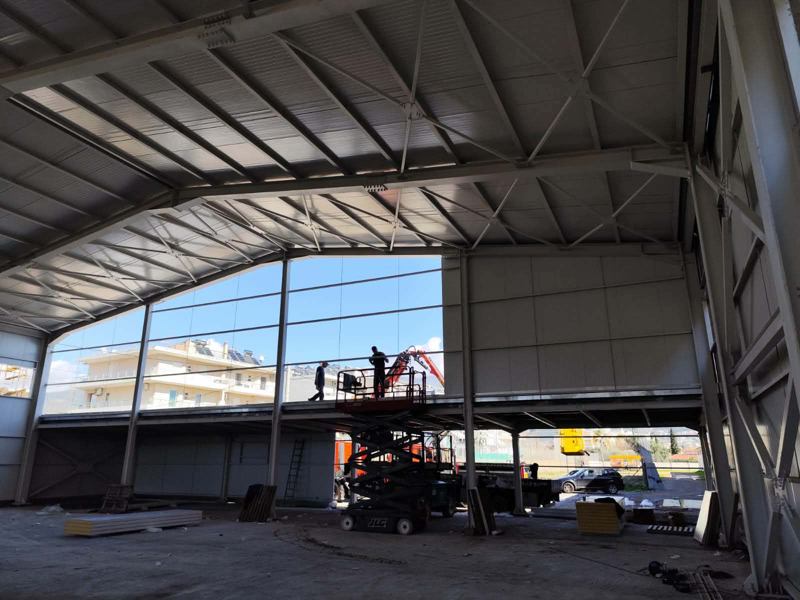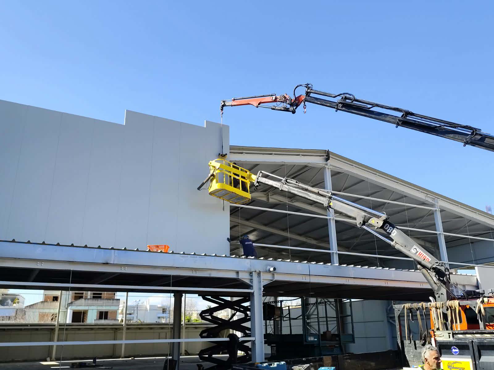 Το τελευταίο χρονικό διάστημα προχωρούν οι εργασίες τοποθέτησης των πάνελ πλαγιοκάλυψης και οροφής, με την αθλητική εγκατάσταση να παίρνει μορφή.