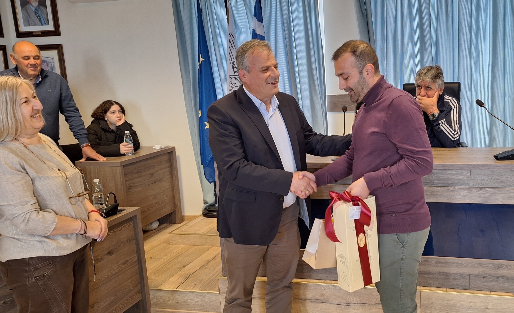 Κατά τη διάρκεια της συνάντησης, πραγματοποιήθηκε ανταλλαγή αναμνηστικών δώρων μεταξύ του δημάρχου και των εκπροσώπων του Δήμου Παιονίας και της Κοινότητας Ποντοηράκλειας, μεταξύ των οποίων ο αντιδήμαρχος Αθλητισμού Παιονίας Ευστάθιος Αβραμίδης, ο πρόεδρος της Κοινότητας Ποντοηράκλειας Χαράλαμπος Παυλίδης, η πρόεδρος του Ποντιακού Συλλόγου Ποντοηράκλειας “Διγενής Ακρίτας” Δέσποινα Φρονημοπούλου, τα μέλη του Διοικητικού Συμβουλίου, ο χοροδιδάσκαλος Παύλος Τσιλογλανίδης, καθώς και ιδιαίτερη τιμητική αναφορά στον Νίκο Σιάννα, αρθρογράφο και τοπικό συγγραφέα, ο οποίος συμμετείχε στην αντιπροσωπεία.