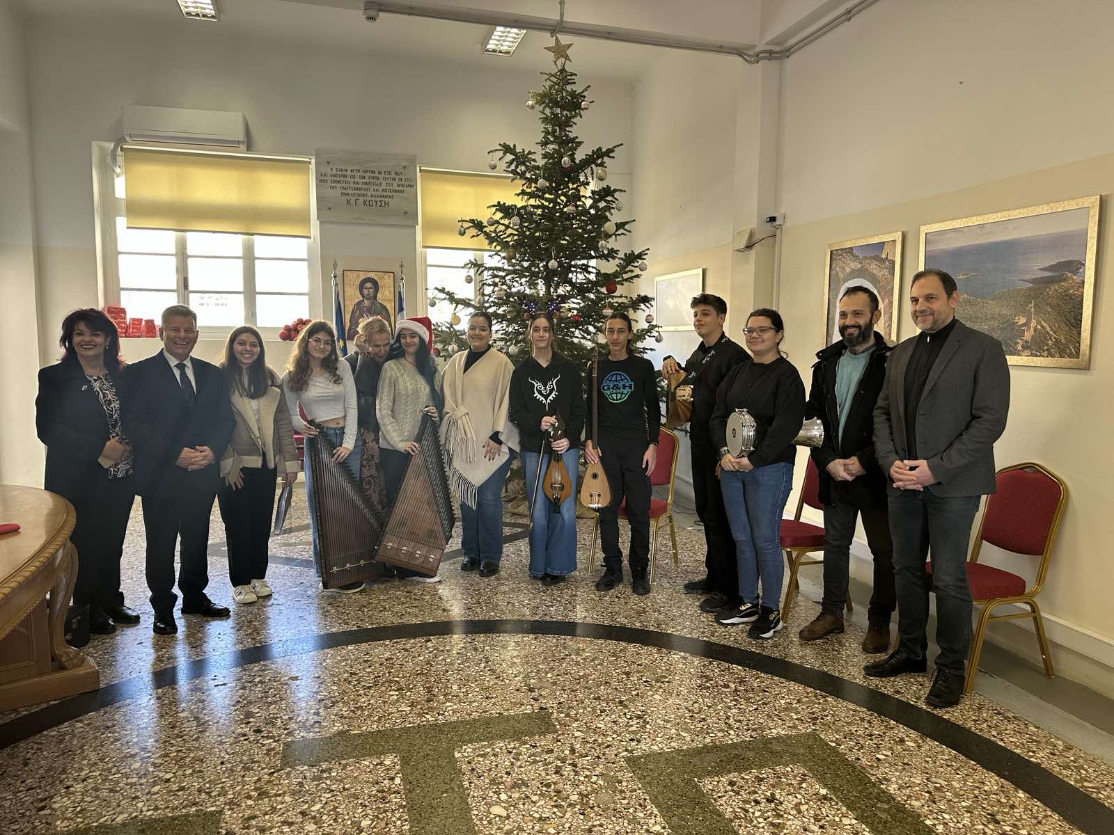 Ο αντιπεριφερειάρχης Μεσσηνίας Στάθης Αναστασόπουλος ευχαρίστησε τους μαθητές και τους εκπαιδευτικούς για την επίσκεψη και ευχήθηκε καλή πρόοδο και καλές γιορτές. Παρούσα ήταν και η αντιπεριφερειάρχης Κοινωνικής Αλληλεγγύης και Αρωγής Μαρία Οικονομάκου, η οποία ευχήθηκε οι γιορτές να φέρουν φως, χαμόγελα και επιτυχίες.