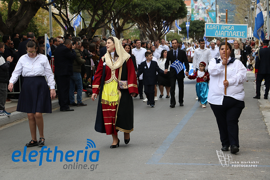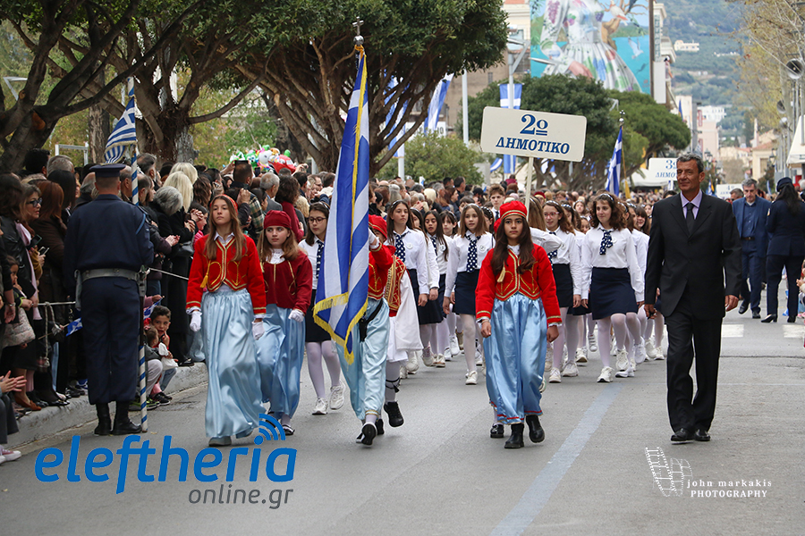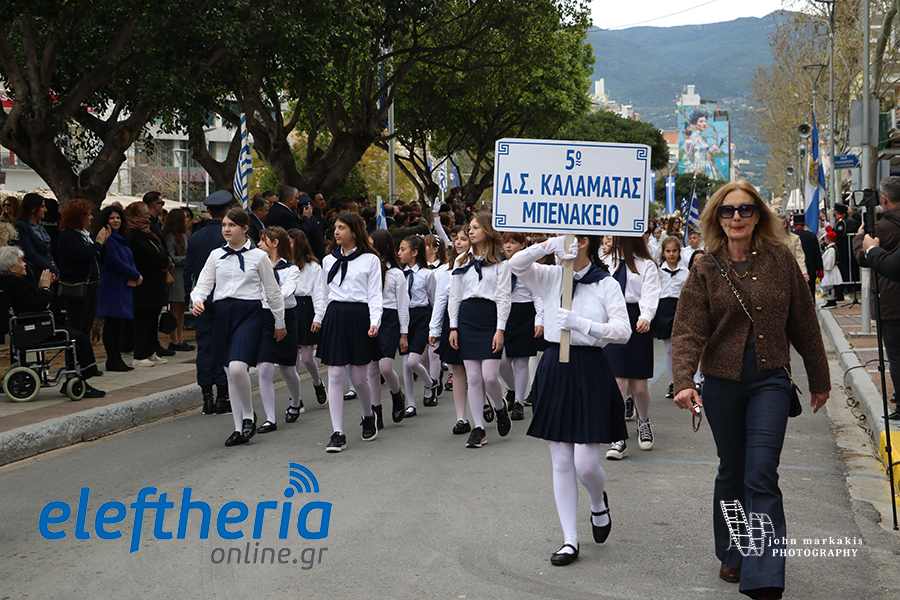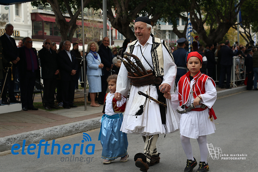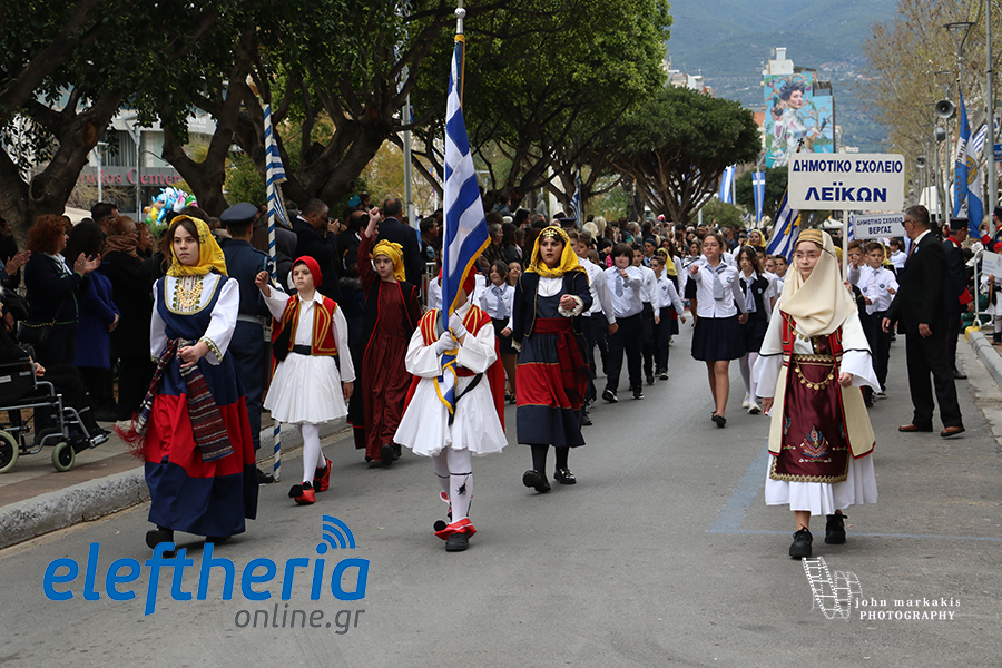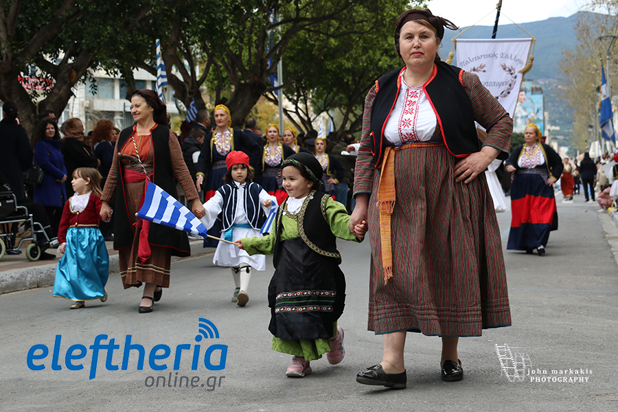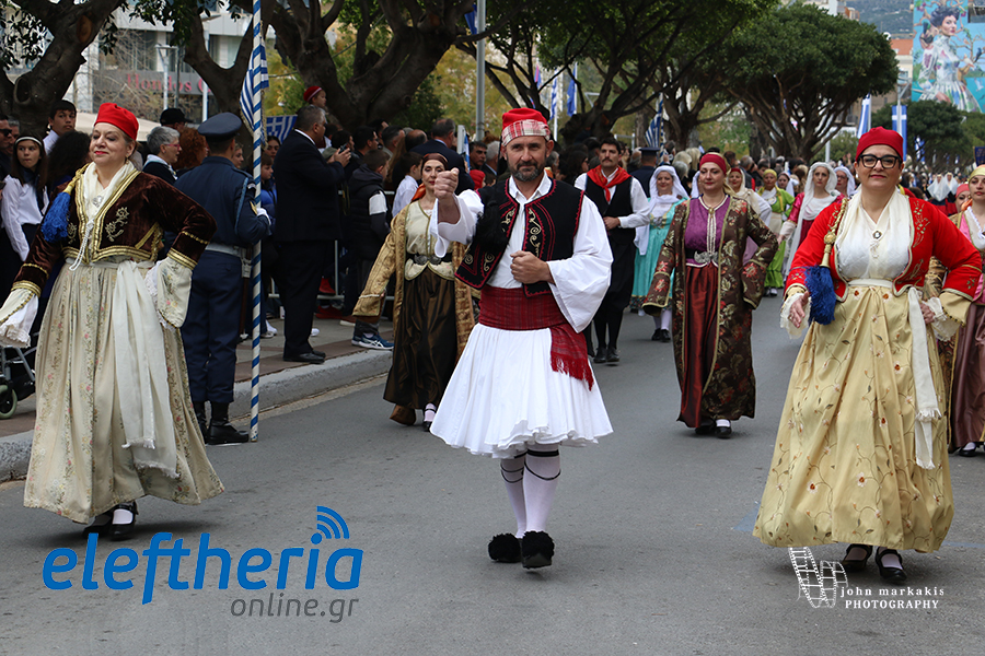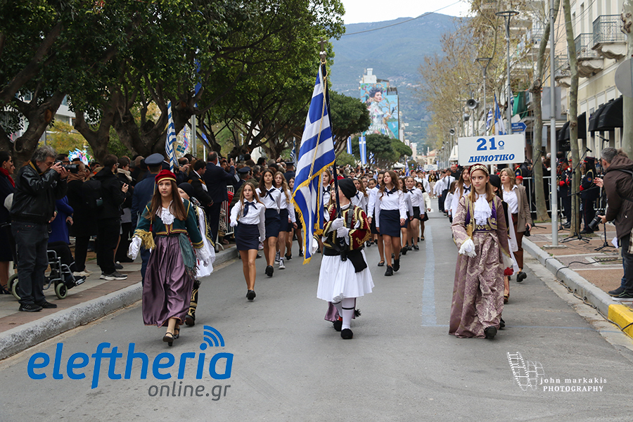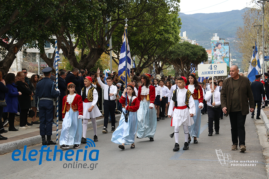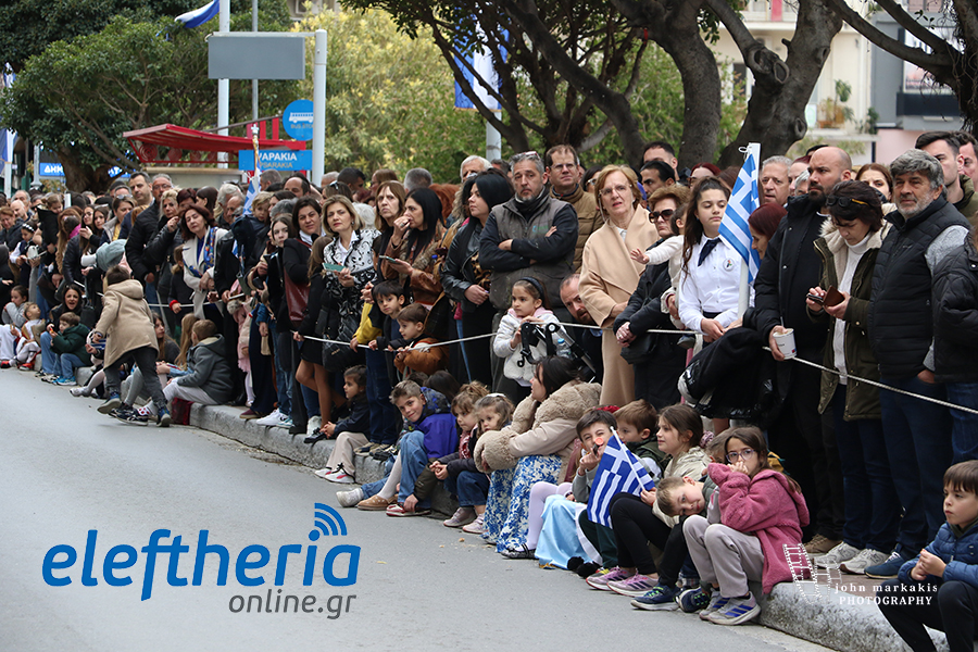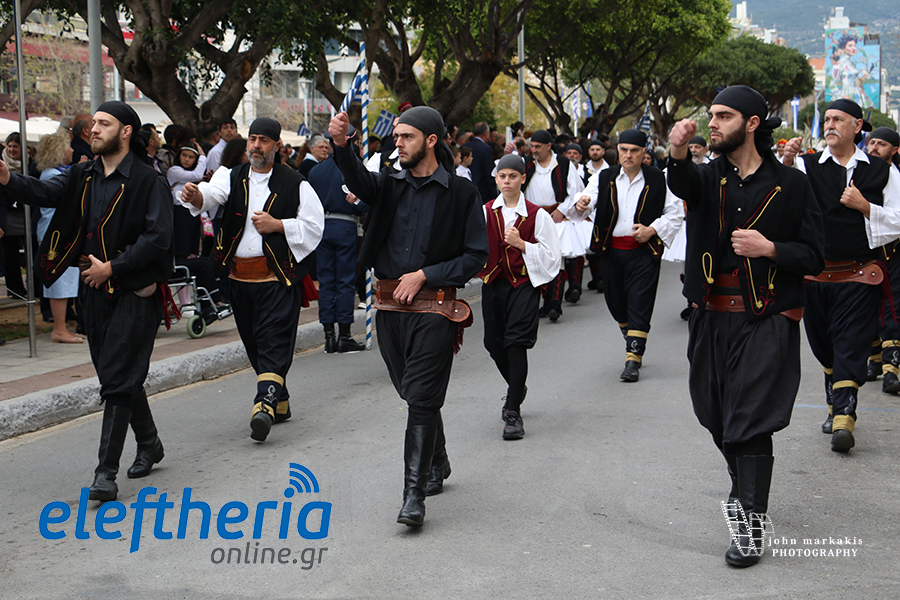 Παρότι ο καιρός δεν ήταν ο ιδανικός, πλήθος κόσμου παρακολούθησε τη μαθητική παρέλαση, στον πεζόδρομο και την οδό Αριστομένους, στην οποία όπως κάθε χρόνο συμμετείχαν και μέλη αρκετών λαογραφικών και άλλων συλλόγων, καθώς και στρατιωτικά και μηχανοκίνητα τμήματα. Σε ό,τι έχει να κάνει με την Φιλαρμονική, έδωσε μεν το παρών στην παρέλαση αλλά όχι σύσσωμη, λόγω της απεργίας του Σωματείου.