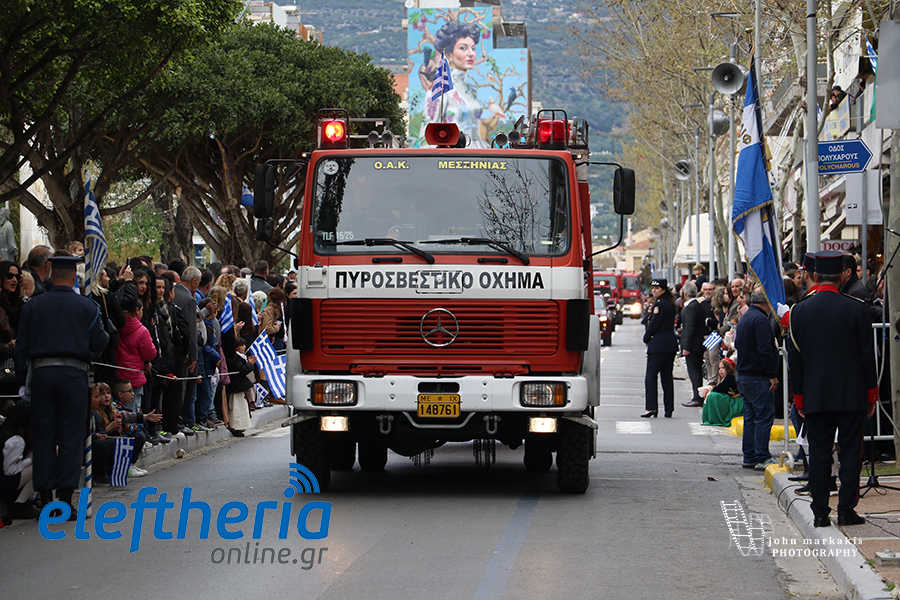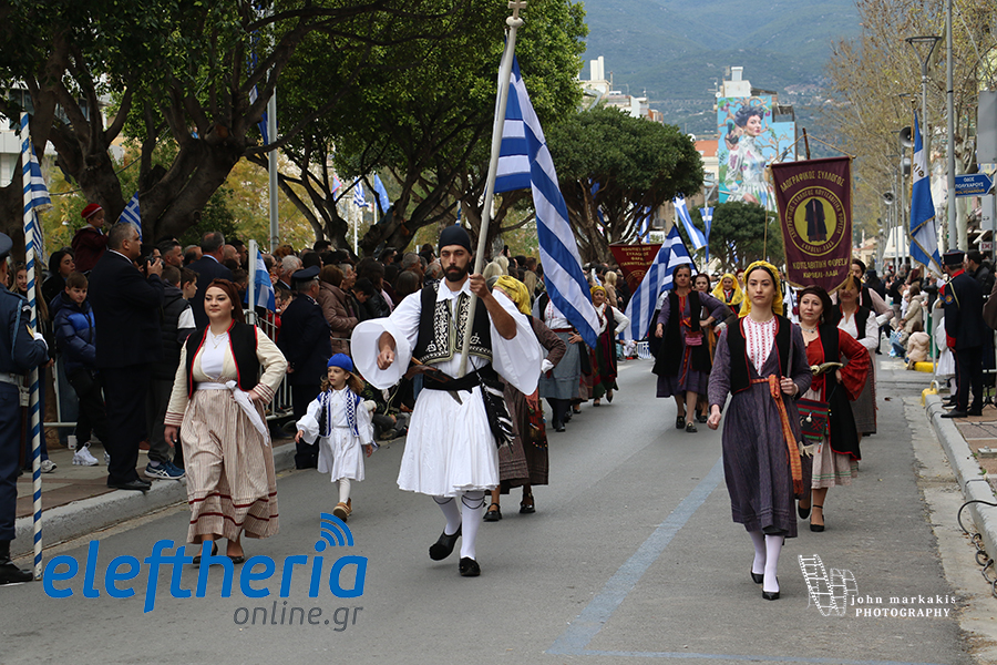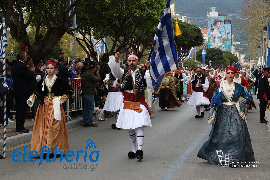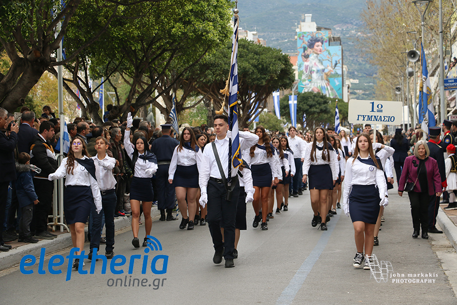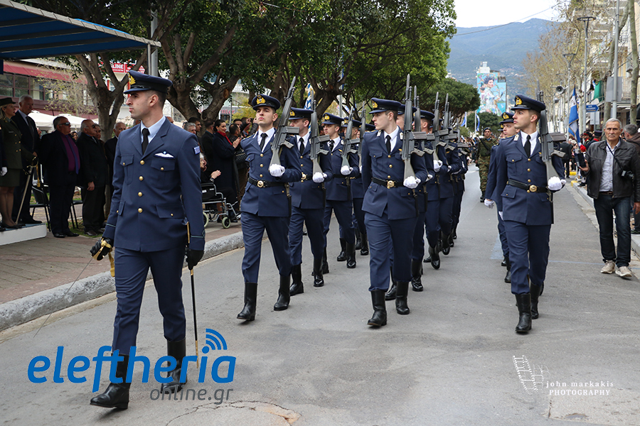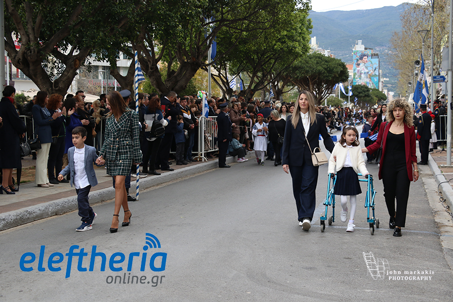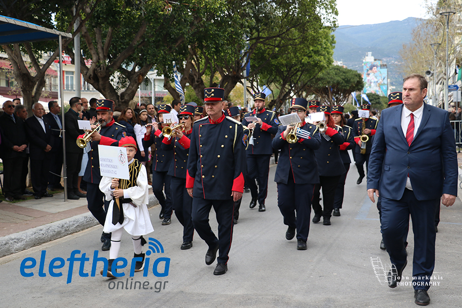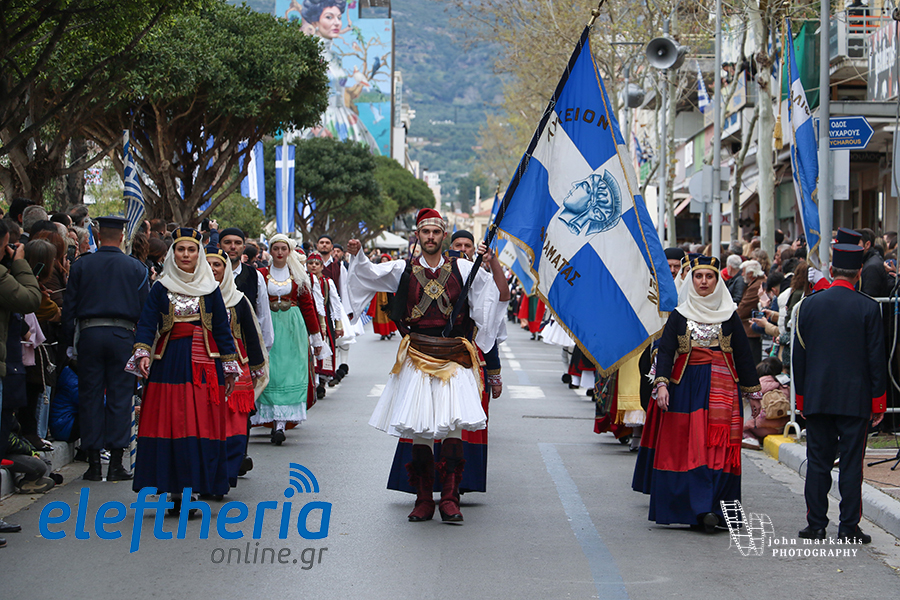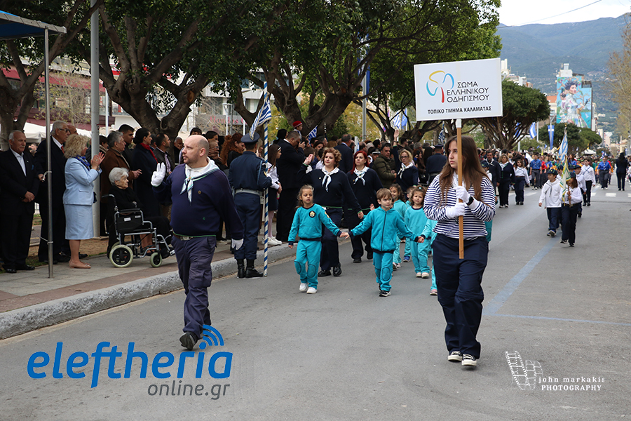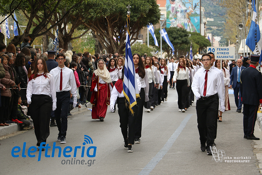 Παρότι ο καιρός δεν ήταν ο ιδανικός, πλήθος κόσμου παρακολούθησε τη μαθητική παρέλαση, στον πεζόδρομο και την οδό Αριστομένους, στην οποία όπως κάθε χρόνο συμμετείχαν και μέλη αρκετών λαογραφικών και άλλων συλλόγων, καθώς και στρατιωτικά και μηχανοκίνητα τμήματα. Σε ό,τι έχει να κάνει με την Φιλαρμονική, έδωσε μεν το παρών στην παρέλαση αλλά όχι σύσσωμη, λόγω της απεργίας του Σωματείου.