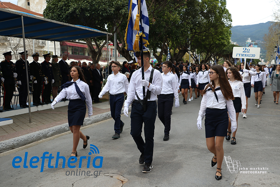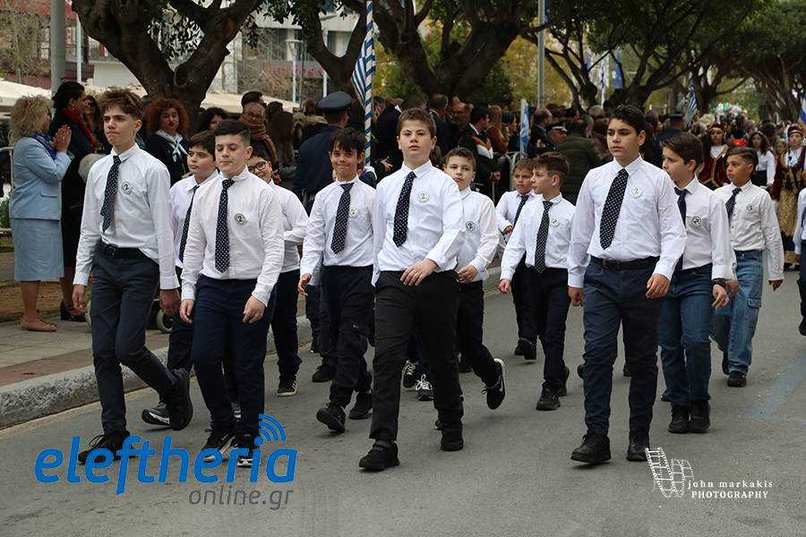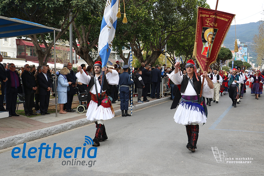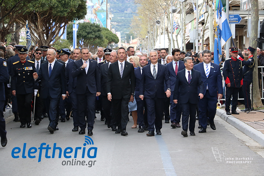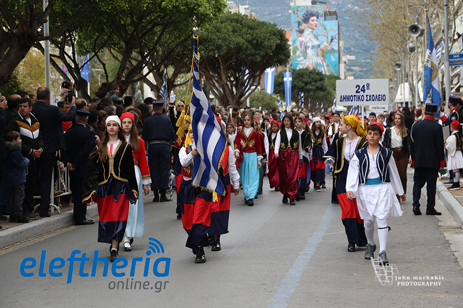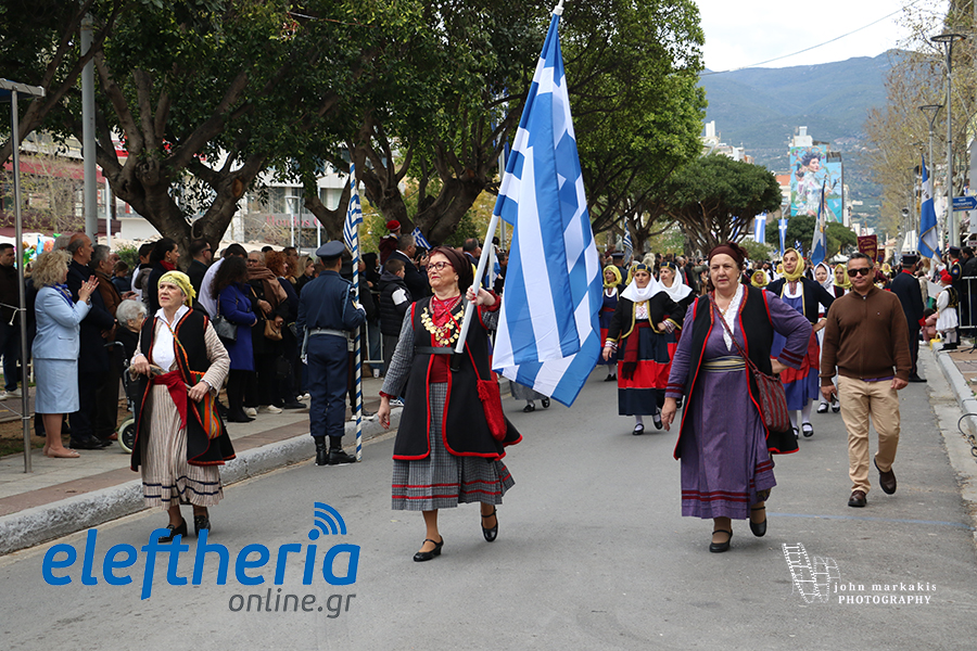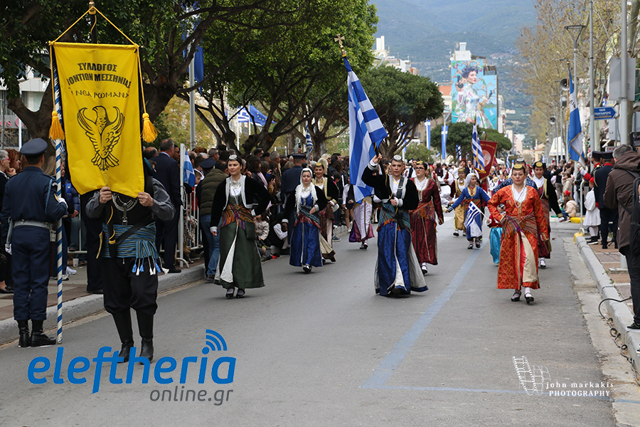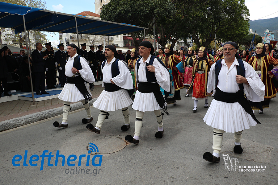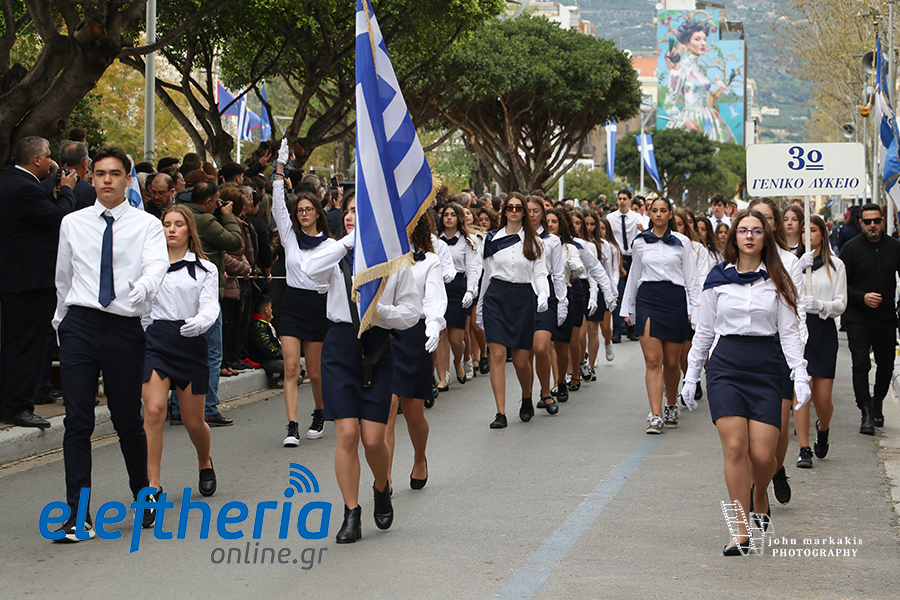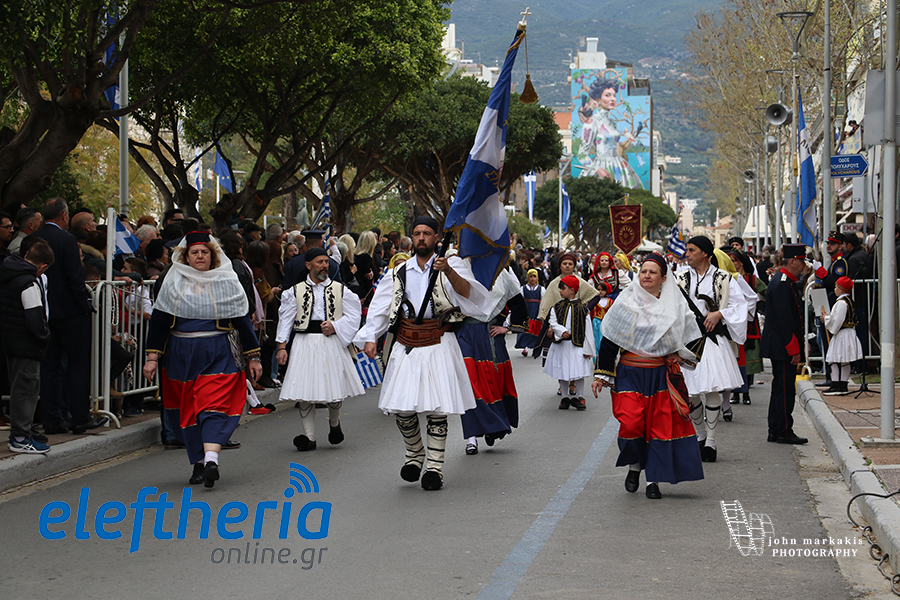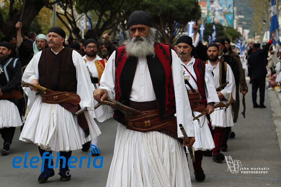 Παρότι ο καιρός δεν ήταν ο ιδανικός, πλήθος κόσμου παρακολούθησε τη μαθητική παρέλαση, στον πεζόδρομο και την οδό Αριστομένους, στην οποία όπως κάθε χρόνο συμμετείχαν και μέλη αρκετών λαογραφικών και άλλων συλλόγων, καθώς και στρατιωτικά και μηχανοκίνητα τμήματα. Σε ό,τι έχει να κάνει με την Φιλαρμονική, έδωσε μεν το παρών στην παρέλαση αλλά όχι σύσσωμη, λόγω της απεργίας του Σωματείου.