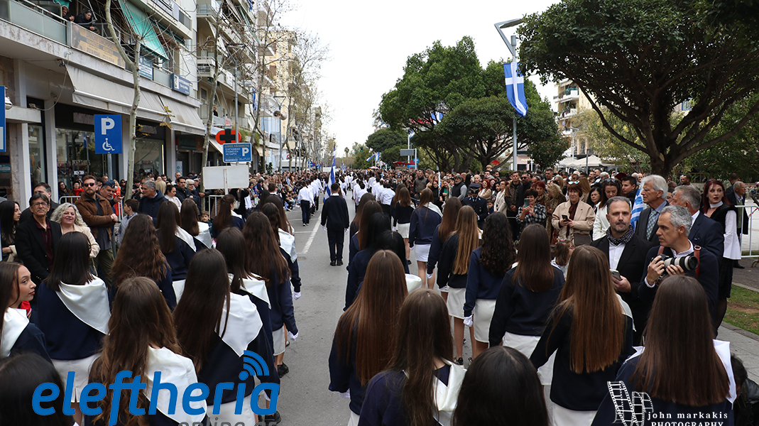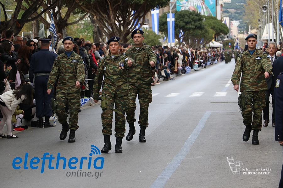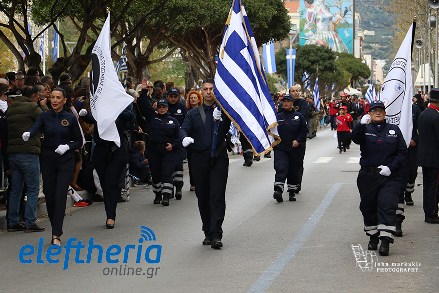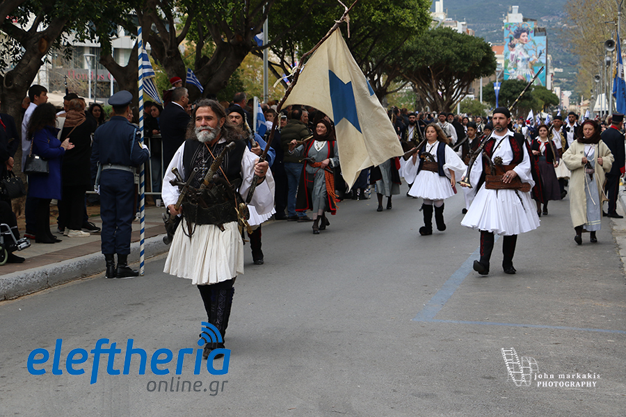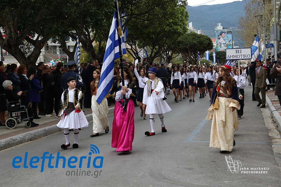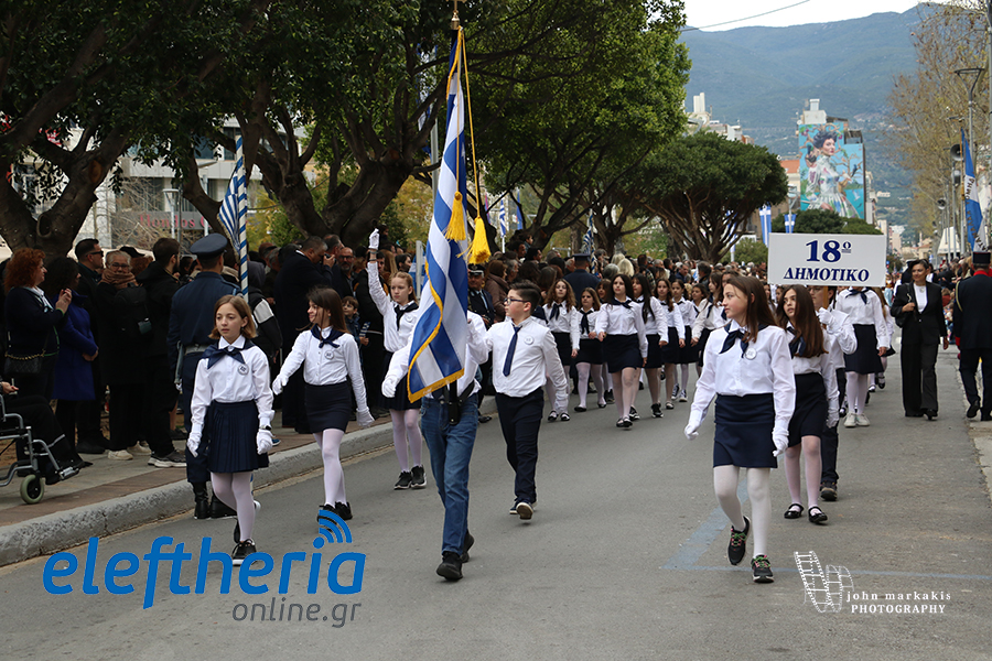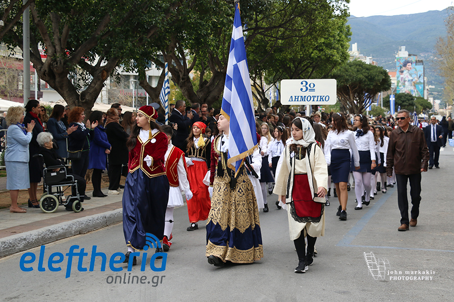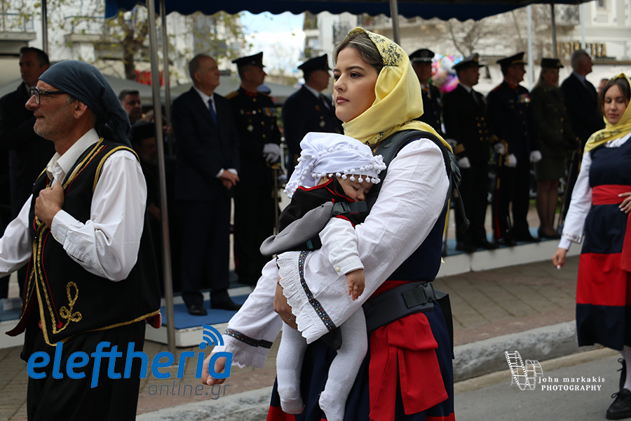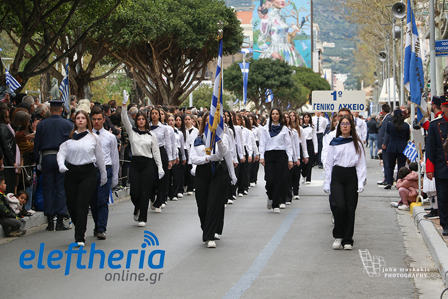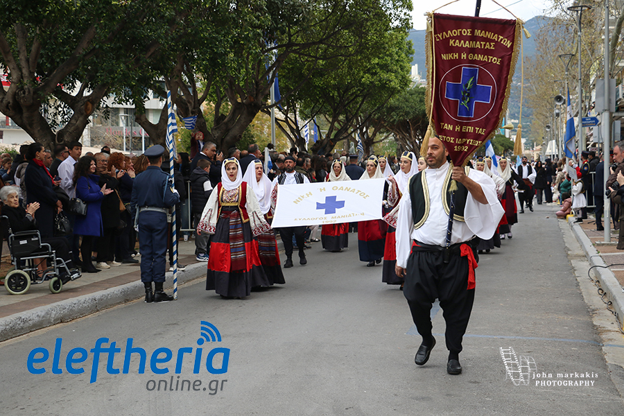 Παρότι ο καιρός δεν ήταν ο ιδανικός, πλήθος κόσμου παρακολούθησε τη μαθητική παρέλαση, στον πεζόδρομο και την οδό Αριστομένους, στην οποία όπως κάθε χρόνο συμμετείχαν και μέλη αρκετών λαογραφικών και άλλων συλλόγων, καθώς και στρατιωτικά και μηχανοκίνητα τμήματα. Σε ό,τι έχει να κάνει με την Φιλαρμονική, έδωσε μεν το παρών στην παρέλαση αλλά όχι σύσσωμη, λόγω της απεργίας του Σωματείου.