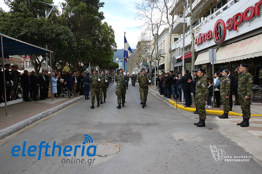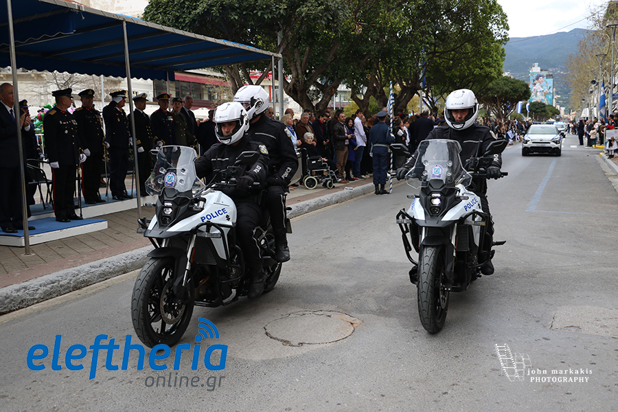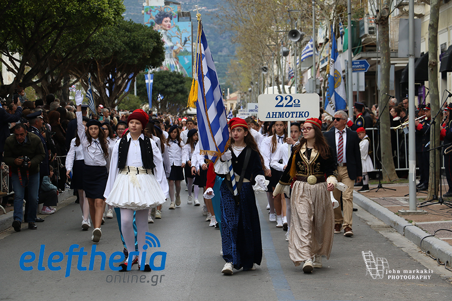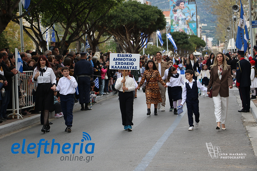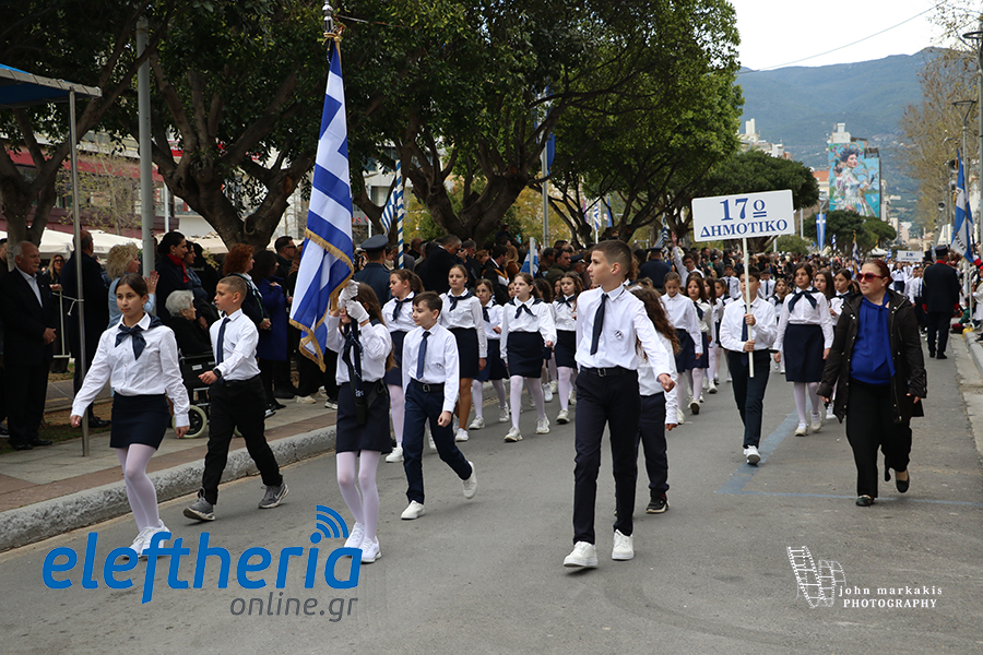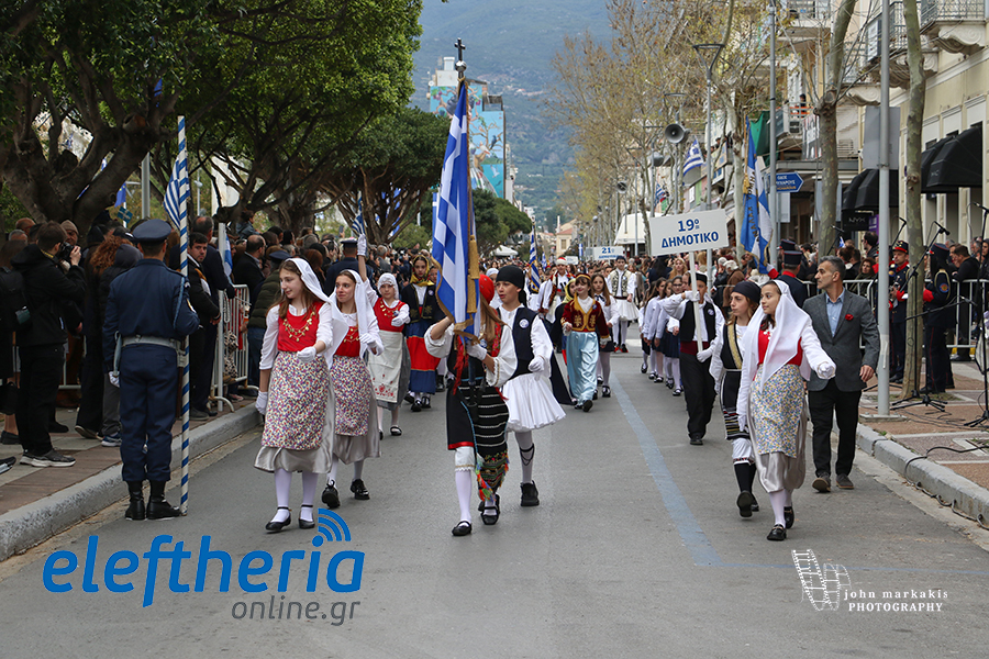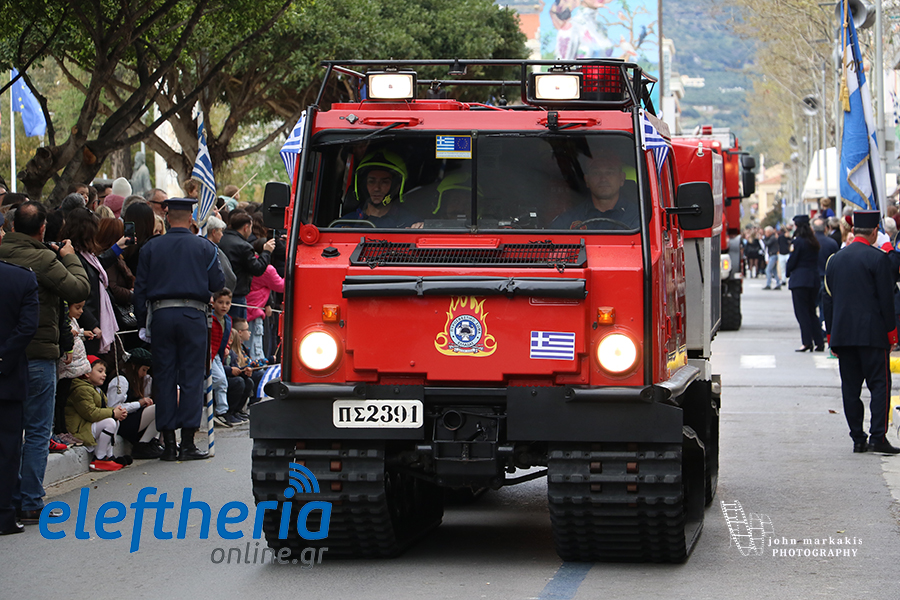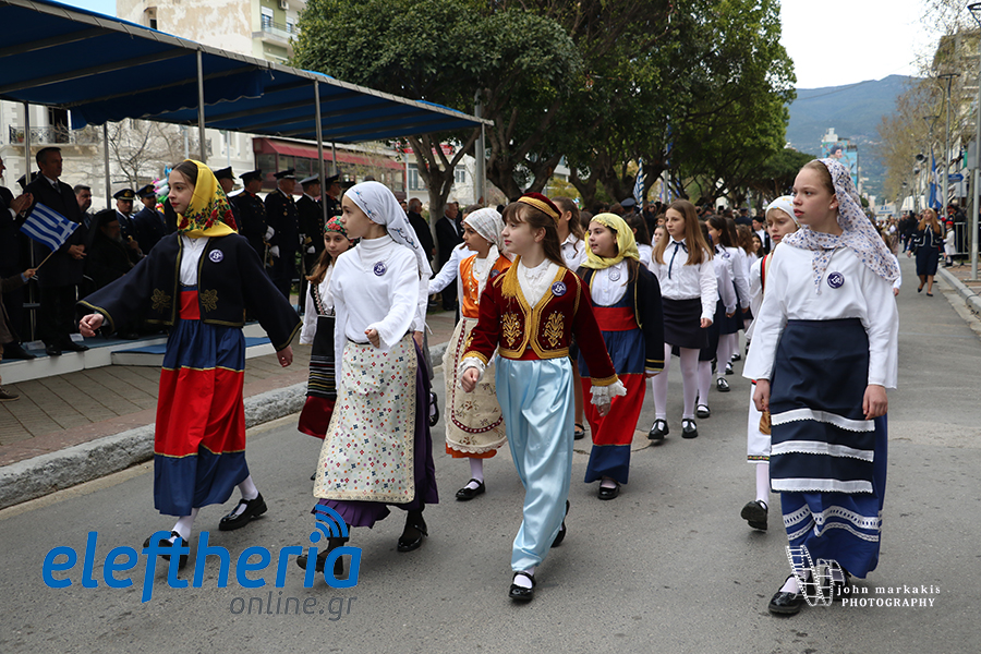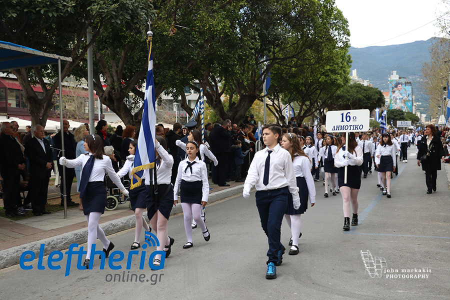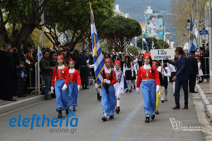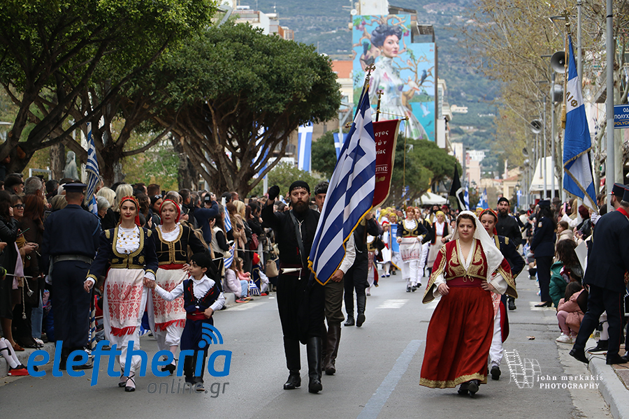 Παρότι ο καιρός δεν ήταν ο ιδανικός, πλήθος κόσμου παρακολούθησε τη μαθητική παρέλαση, στον πεζόδρομο και την οδό Αριστομένους, στην οποία όπως κάθε χρόνο συμμετείχαν και μέλη αρκετών λαογραφικών και άλλων συλλόγων, καθώς και στρατιωτικά και μηχανοκίνητα τμήματα. Σε ό,τι έχει να κάνει με την Φιλαρμονική, έδωσε μεν το παρών στην παρέλαση αλλά όχι σύσσωμη, λόγω της απεργίας του Σωματείου.