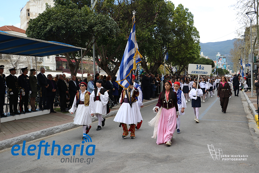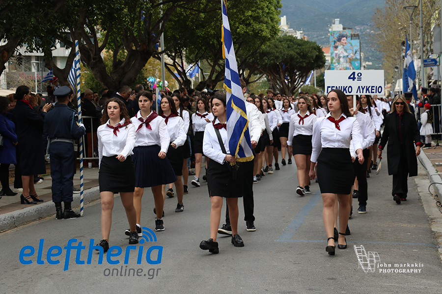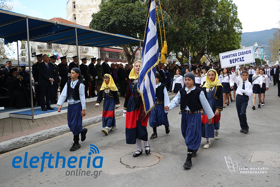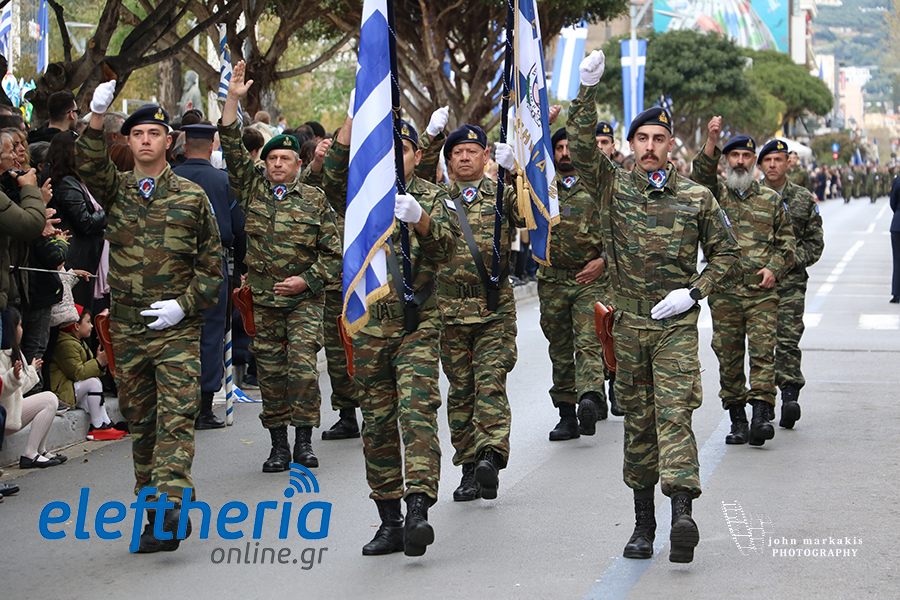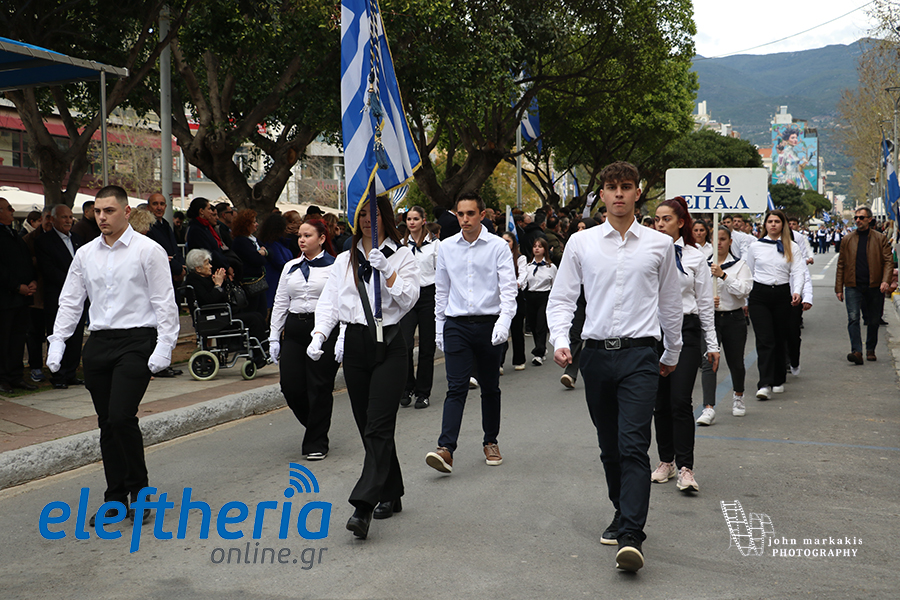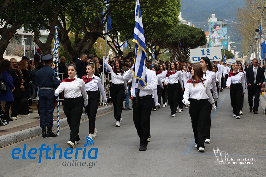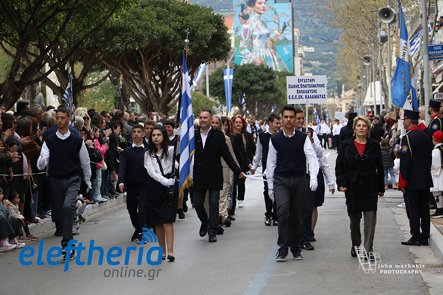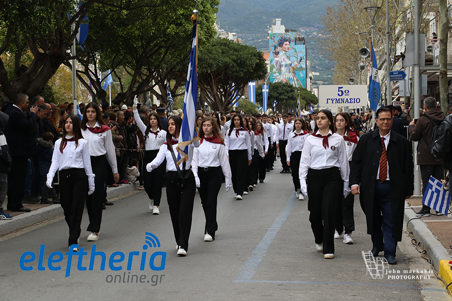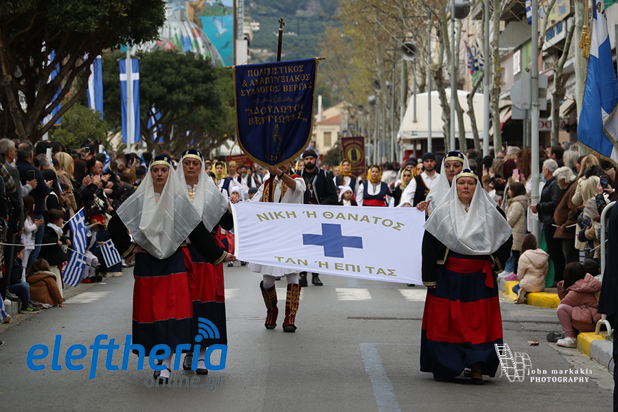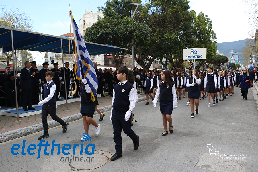 Παρότι ο καιρός δεν ήταν ο ιδανικός, πλήθος κόσμου παρακολούθησε τη μαθητική παρέλαση, στον πεζόδρομο και την οδό Αριστομένους, στην οποία όπως κάθε χρόνο συμμετείχαν και μέλη αρκετών λαογραφικών και άλλων συλλόγων, καθώς και στρατιωτικά και μηχανοκίνητα τμήματα. Σε ό,τι έχει να κάνει με την Φιλαρμονική, έδωσε μεν το παρών στην παρέλαση αλλά όχι σύσσωμη, λόγω της απεργίας του Σωματείου.