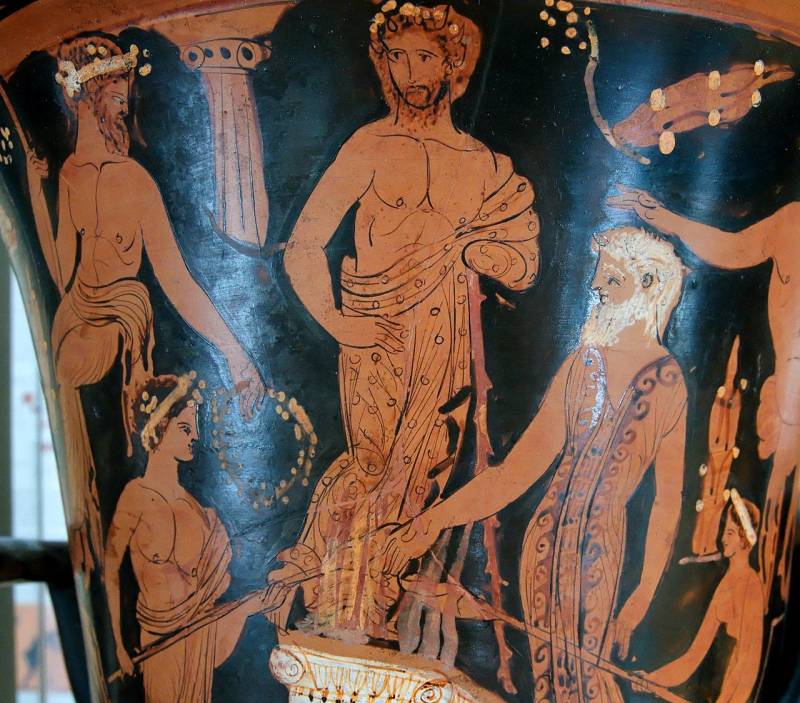 (Στη φωτογραφία: Ο Νέστορας και οι γιοι του θυσιάζουν στον Ποσειδώνα στην παραλία της Πύλου. Αττικός ερυθρόμορφος καλυκωτός κρατήρας. Εθνικό Αρχαιολογικό Μουσείο).