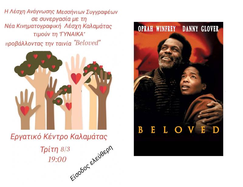 Το έργο είναι βασισμένο στο ομώνυμο μυθιστόρημα της Τόνι Μόρρισον. Η προβολή θα γίνει την Τρίτη 8 Μαρτίου στις 7 μ.μ στο Εργατικό Κέντρο Καλαμάτας, στο Αμφιθέατρο “Θεόδωρος Αγγελόπουλος”, τηρουμένων όλων των απαραίτητων μέτρων προστασίας από τον covid-19 (αποστάσεις, χρήση μάσκας, κ.λπ.). Η είσοδος θα είναι ελεύθερη.
