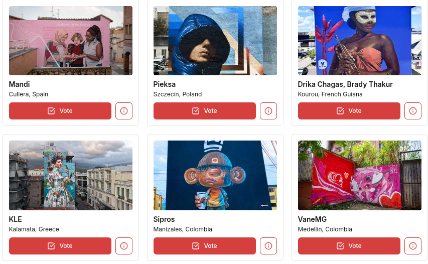 Τα “Best Of Awards” του “Street Art Cities” αποτελούν έναν από τους σημαντικότερους θεσμούς παγκόσμιας ανάδειξης street art έργων. Κάθε μήνα παρουσιάζονται οι σημαντικότερες νέες τοιχογραφίες από πόλεις όλου του κόσμου και το κοινό καλείται να ψηφίσει τα έργα που ξεχωρίζουν για την πρωτοτυπία, την τεχνική αρτιότητα και το καλλιτεχνικό τους στίγμα.