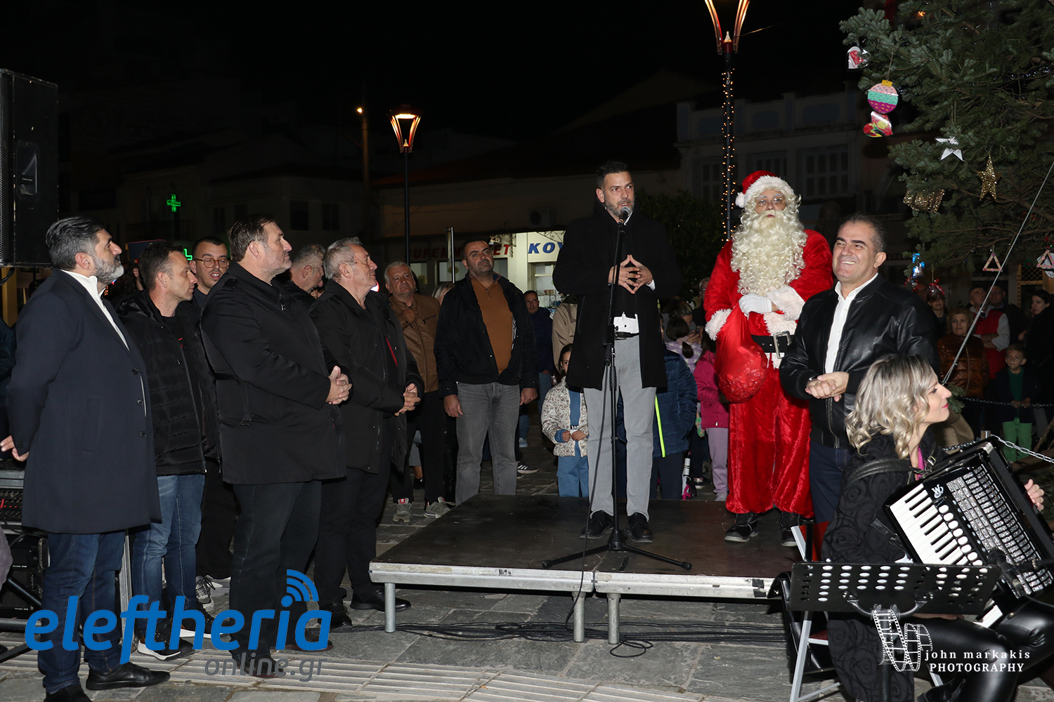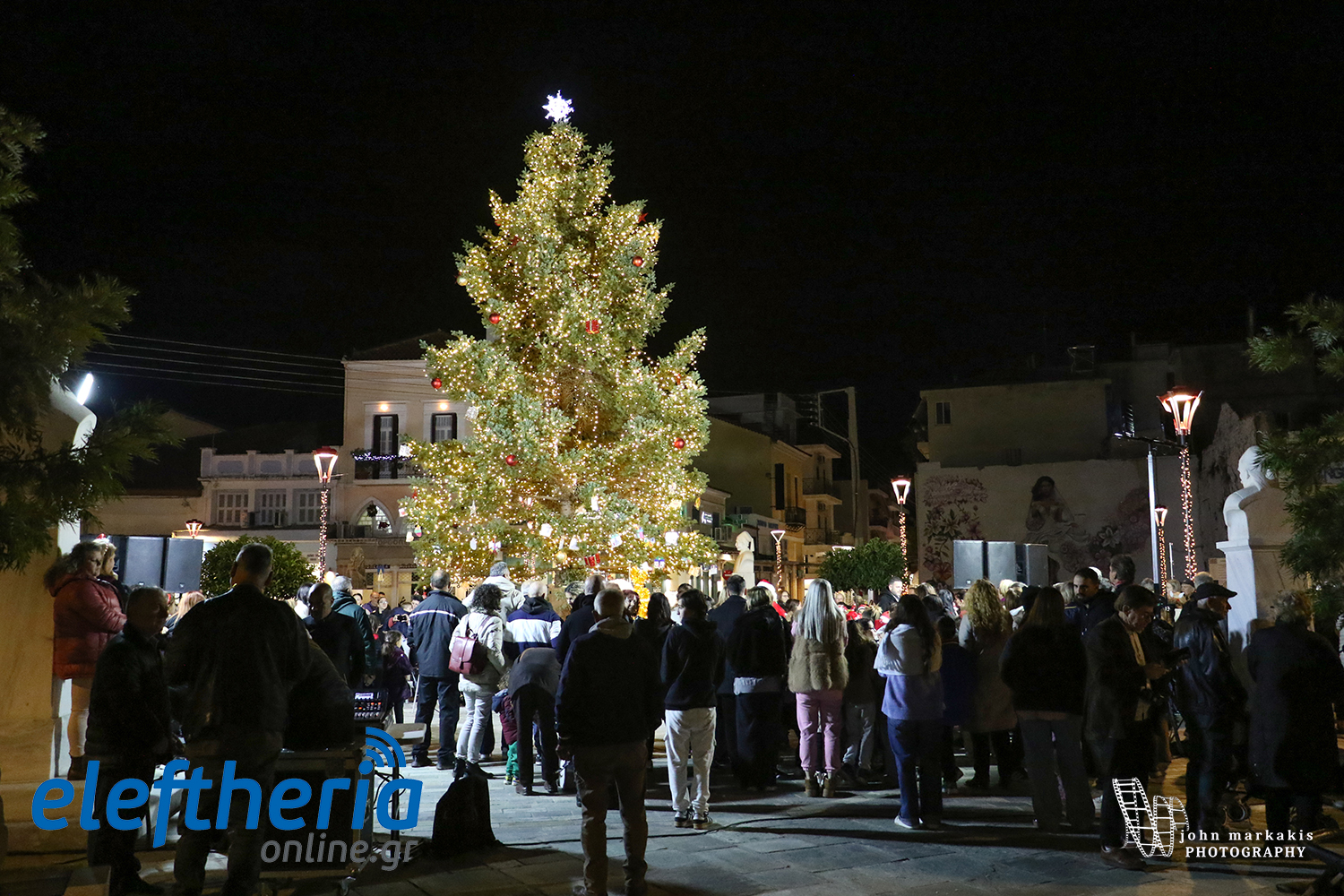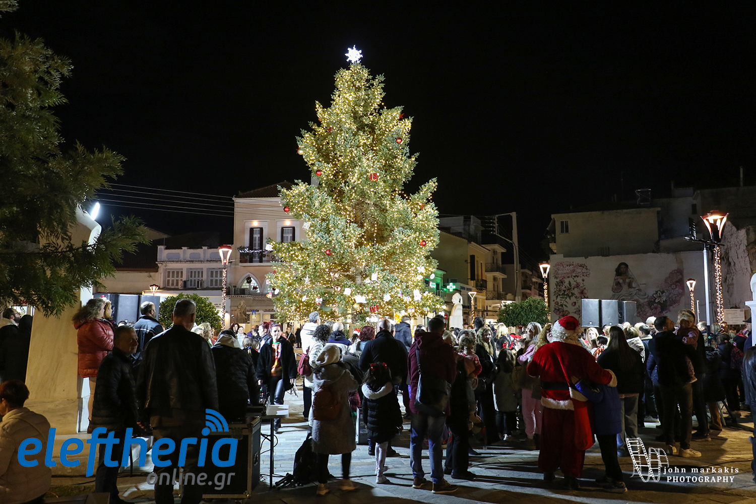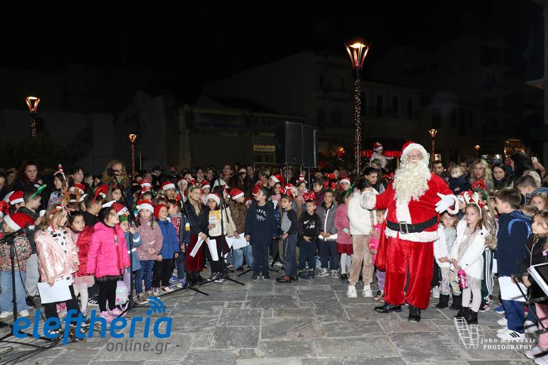 Η φωταγώγηση του νέου φυσικού Χριστουγεννιάτικου δέντρου ύψους 10 μέτρων στην πλατεία 23ης Μαρτίου ήρθε ως συνέχεια των εκδηλώσεων στην Κεντρική Αγορά, στην κεντρική πλατεία και στο λιμάνι, γεμίζοντας την περιοχή με χαμόγελα, μουσική και γιορτινή διάθεση.