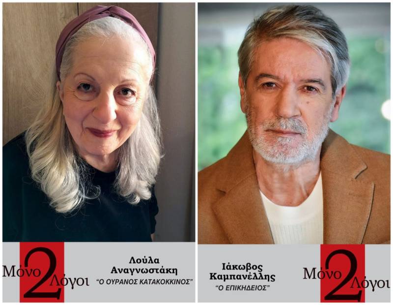 Στον μονόλογο «Ο επικήδειος» (1992) και στο μονοπρόσωπο έργο «Ο ουρανός κατακόκκινος» (1998), ο Ιάκωβος Καμπανέλλης και η Λούλα Αναγνωστάκη αντίστοιχα επαληθεύουν για μια ακόμη φορά τη διαχρονικότητα της υπαινικτικής γραφής τους.