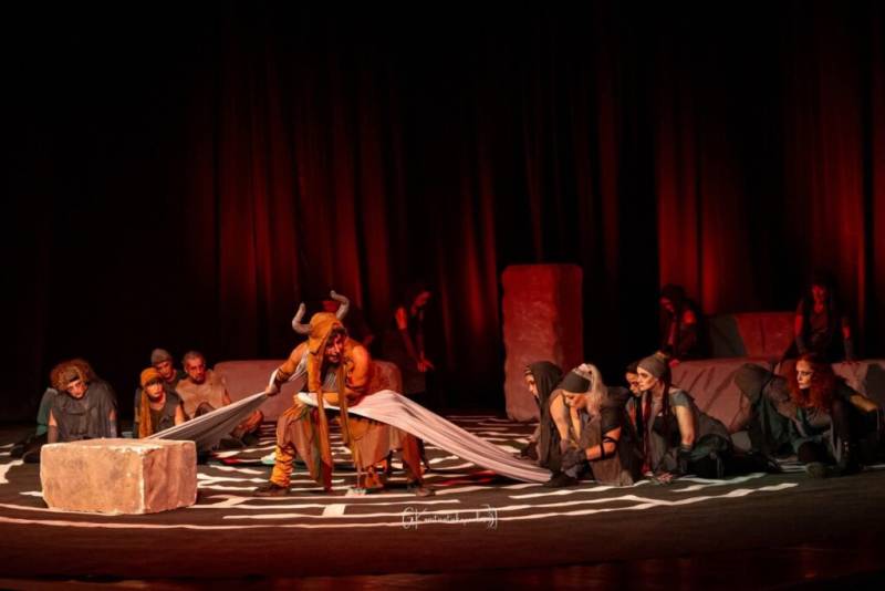 Συγχαρητήρια στον Παναγιώτη Καραμπέτσο για το απίστευτο βάρος της αφήγησης στον πρωταγωνιστικό ρόλο του Μινώταυρου. Αλλά και στους άλλους, στον Στρατή Καΐκη (Δαίδαλο), στον Γιώργο Τσοπανάκη (Θησέα), στον Ηλία Παρθένιο (Μίνωα) και στη Βιβή Καραμπέτσου (Πασιφάη). Ακόμα, σε όλα τα μέλη του χορού που καλά προετοιμασμένα λειτούργησαν δυναμικά ως ομάδα.