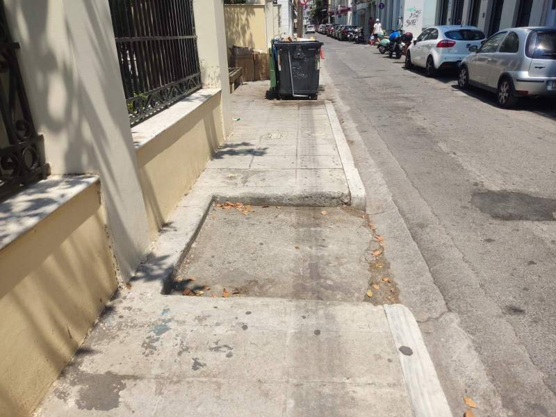 Κάδοι υπάρχουν λίγα μόλις μέτρα πιο πάνω. Επειδή το κενό δημιουργεί κίνδυνο πρόκλησης ατυχήματος και μπορεί να πέσει και να χτυπήσει κάποιος άνθρωπος, ο δήμος οφείλει να το κλείσει και να