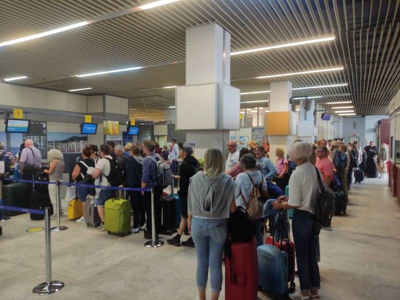 Η εικόνα αυτή με την ουρά των ταξιδιωτών (Γερμανών στην πλειονότητά τους) είναι στο αεροδρόμιο, από τον έλεγχο των εισιτηρίων και των αποσκευών, το απόγευμα του περασμένου Σαββάτου 27 Σεπτεμβρίου.