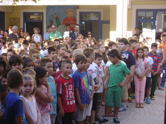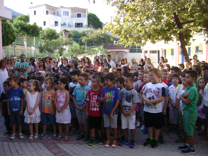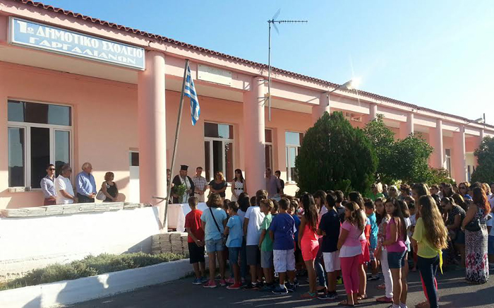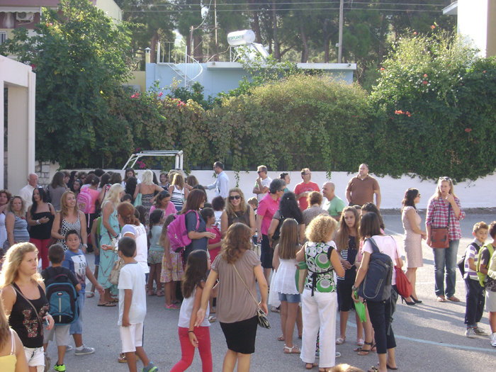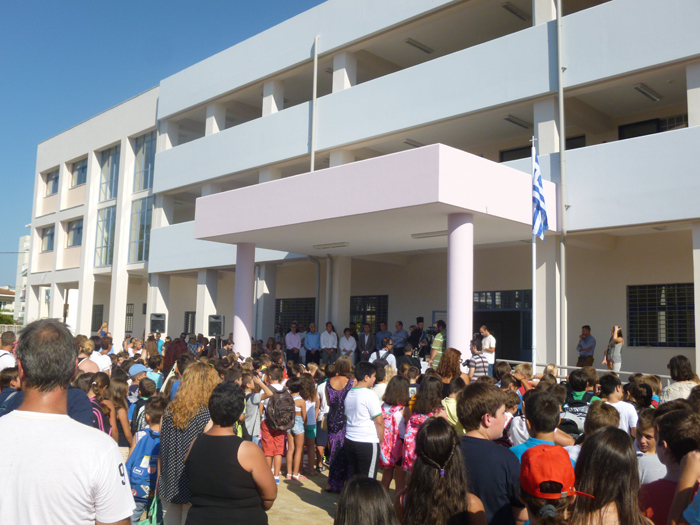 Ευχές στα παιδιά και στους καθηγητές έδωσαν ο αντιδήμαρχος Δημήτρης Μπούχαλης και ο πρόεδρος του Συλλόγου Γονέων και της Ενωσης Συλλόγων Γιώργος Κουρέτας.