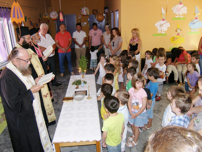 Χθες το πρωί παρουσία των μικρών μαθητών, των εκπαιδευτικών και τοπικών φορέων, τελέστηκε ο καθιερωμένος αγιασμός και στα πρόσωπα όλων υπήρχε το χαμόγελο αφού είδαν και πάλι να ζωντανεύει το σχολείο του χωριού τους έστω και ως νηπιαγωγείο.
