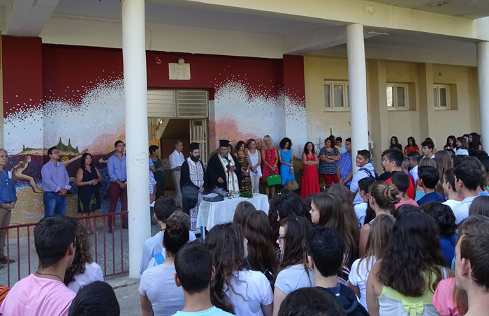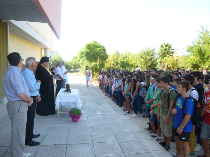 Στο Γυμνάσιο Παραλίας ο αγιασμός καθυστέρησε, καθώς δεν εμφανίστηκε κληρικός στην προγραμματισμένη ώρα και επιστρατεύτηκε ο αρχιμανδρίτης Νικόλαος.
