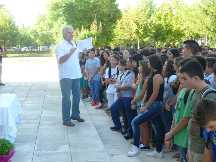 Ο διευθυντής του σχολείου Βαγγέλης Αντωνόπουλος ευχήθηκε σε μαθητές και εκπαιδευτικούς καλή σχολική χρονιά και μίλησε για τις επιτυχίες που έχει το σχολείο, οι οποίες οφείλονται πρωτίστως στα παιδιά και την καλή συνεργασία που έχουν αλλά και στο άριστο προσωπικό.