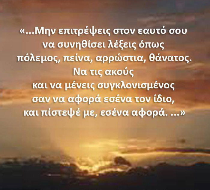 Νιώσε την ανεκτίμητη αξία των στιγμών. Πολλοί από το ποίμνιο, μεταξύ αυτών και άνθρωποι επιτυχημένοι κοινωνικά, μορφωμένοι, πλην όμως δίχως ύψιστες αρετές, χωρίς ωραία ιδανικά , είχαν πλησιάσει θεατές σε σκηνές ενός 21ου αιώνα απαράλλακτα ίδιες-ή κατά το μάλλον χειρότερες από τις παλιές του μεσαίωνα. Κατάφεραν θρίαμβο ανήθικα αψεγάδιαστο. Ένα κοριτσάκι γλίστρησε από τα χέρια της μάνας του καθώς ο πόνος ούρλιαξε μέσα στο μικρό παιδί ‘’αφήστε την!! ‘’ τσίριξε και έβαλε τα κλάματα.