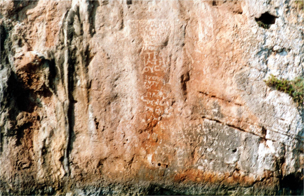 Βόρεια της Βουρλιάς και μετά την Παναγούλα, ανατολικά στο “λαιμό” υπάρχει ο όρμος Γραμμένο ή Γράμματα. Εδώ βρίσκουμε αρκετές επιγραφές “ευπλοίας” κυρίως της ρωμαϊκής αλλά και της βυζαντινής εποχής. Κινδυνεύοντα πλοία και ναυτικοί κατέφευγαν σ’ αυτόν το μικρό όρμο της Πρώτης για να σωθούν και ευχαριστώντας τους θεούς ή το Θεό, χάραζαν τα ονόματα των πλοίων και των καπετάνιων τους στους ψηλούς, κάθετους και λείους βράχους που μοιάζουν με τοίχους του μικρού όρμου, ζητώντας “εύπλοια” για το υπόλοιπο ταξίδι τους. Σοβαρό μνημείο της Ιστορίας αυτοί οι βράχοι στο Γραμμένο περιμένουν όπως και όλο το νησί το έμπειρο μάτι και τη γνώση των ειδικών που θα ανακαλύψουν πολύ περισσότερα από το παρελθόν του. Στην Πρώτη υπήρχε και ναός της Ευπλοίας Αρτέμιδος. Στη θέση του ανοικοδομήθηκε ο μικρός ναός της Παναγίας (Παναγούλας).